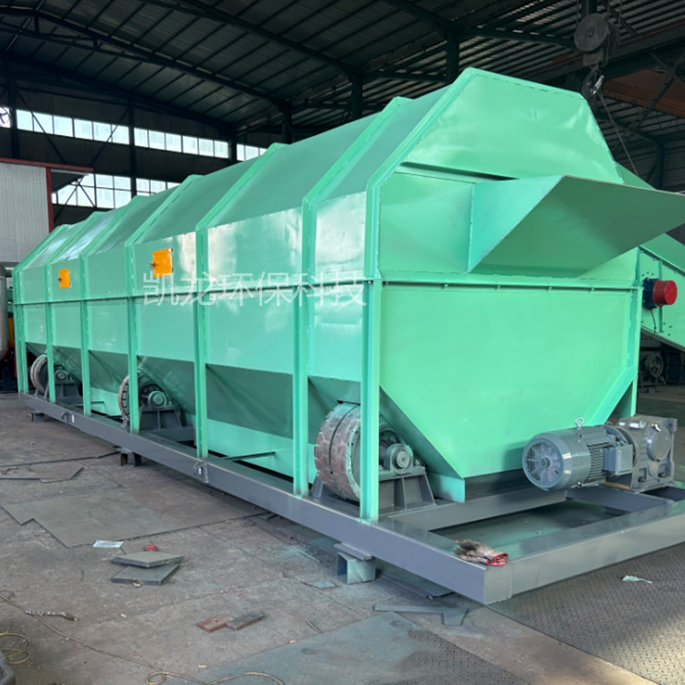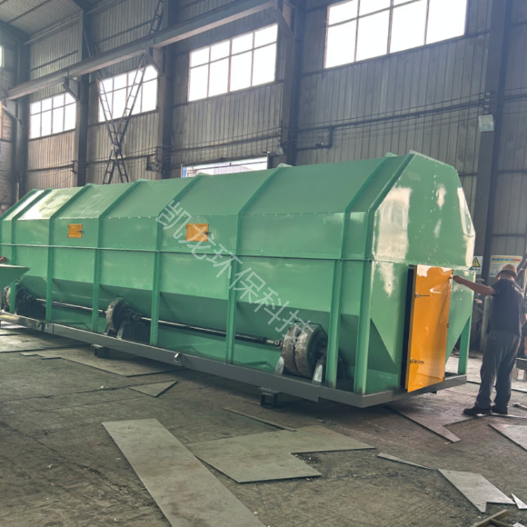 全封閉滾筒篩是一代新型的篩料設備。滾筒篩首要有電機、減速機、滾筒安裝、機架、密封蓋、進出料口構成。全體與地平面成傾斜形態,外部被密封隔離罩所密封,以避免污染情況。經過變速減速系統使篩分筒在必然轉速下扭轉,物料自上而下經過篩分筒獲得別離,細料從篩分筒前端下部排出,粗料從篩分筒下端尾部排出。