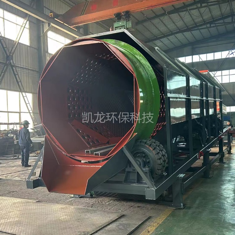 在無軸滾筒篩的設計中,考慮驅動簡繁,應優先采用單邊驅動;如果從驅動平穩、合理利用功率考慮,應優先采用雙邊驅動的分別驅動,因為當物流量小(輕載或空載)時,分別驅動可以作單邊驅動使用,能節省運轉成本。篩筒體的結構形式有:圓形、多邊形和復合形(圓形加多邊形)。凱龍環保通常采用圓形,因為圓形平衡度好,運轉平穩,加工簡單。