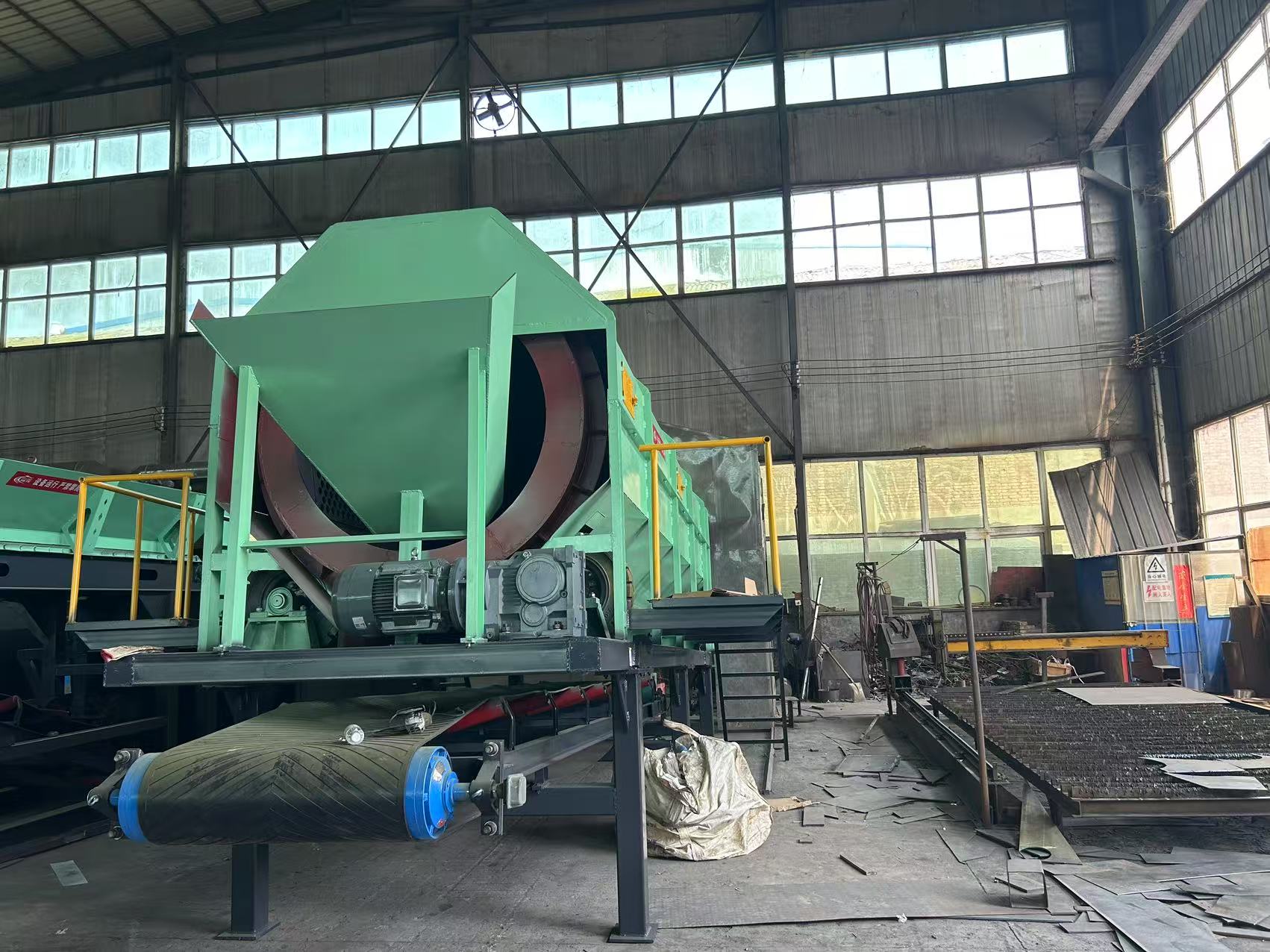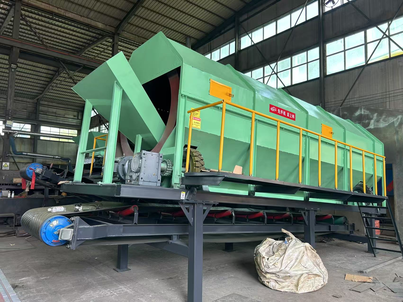 無軸滾筒篩是通過長鼓的孔尺寸來分類廢物。不同尺寸的孔分選不同類型的材料(對沙子,碎玻璃,陶瓷和石材等惰性小于80mm,可回收塑料為80mm至200mm,紙和大塑料為200mm至300mm)。各個零件分別具有比篩網(wǎng)孔的直徑小的尺寸的零件落到機(jī)器的底部,尺寸大于篩網(wǎng)直徑的零件在機(jī)器的上方向前移動,運(yùn)動時,沿出入方向落入排料斗,排向周圍環(huán)境較好。