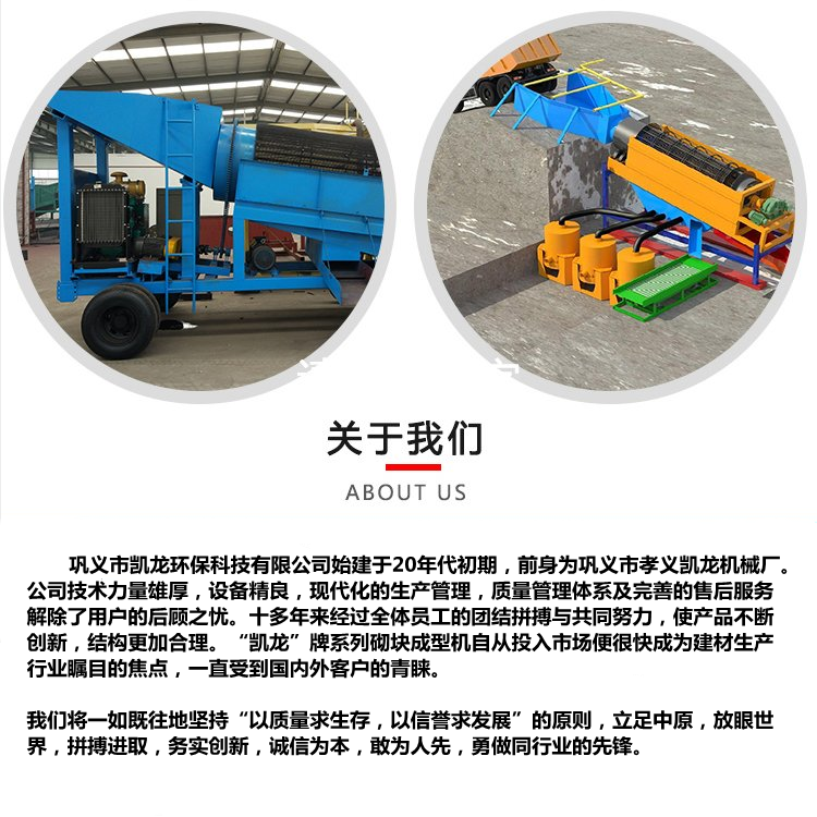 滾筒篩由料倉(cāng)、筒體、底架、輪胎、轉(zhuǎn)盤(pán)、發(fā)電機(jī)、水泵、傳動(dòng)裝置、控制柜和粘金槽組成,是可移動(dòng)的新型選金平臺(tái),適用于需要移動(dòng)作業(yè)的中小型生產(chǎn)規(guī)模的砂金選礦。具有投資少、用工少、作業(yè)簡(jiǎn)單、機(jī)動(dòng)靈活等特點(diǎn)。